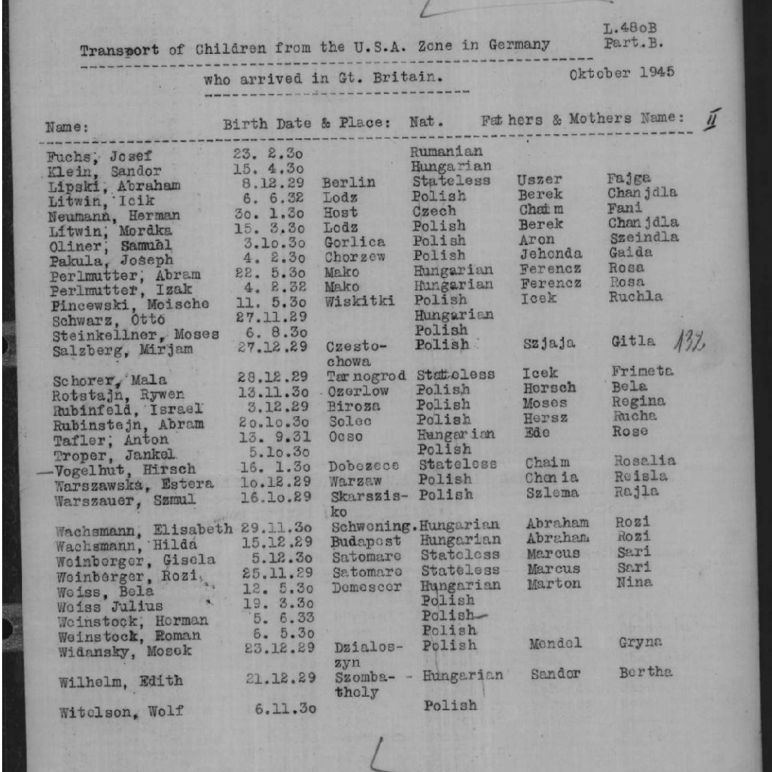 In order to create profiles for each of the Boys, the 2020 research team consulted the online archives at the Arolsen Archives in Germany, the British Library, the UK Imperial War Museum, the United States Holocaust Memorial Museum, the USC Shoah Foundation in the USA and Yad Vashem in Israel, all of which are in the public domain. These archives include testaments, Nazi documentation, survivor registers and lists drawn up by various aid organisations in the immediate aftermath of the Holocaust.