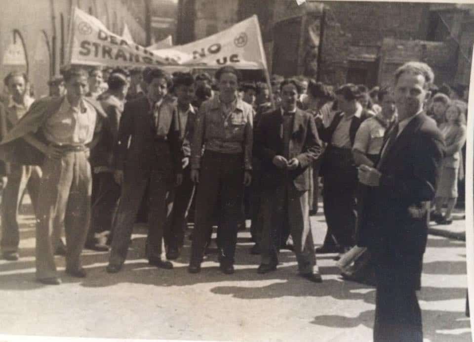 Frydman at the Trafalgar Square June 1946 protest against British policy in Palestine. Gershon Frydman Archive.